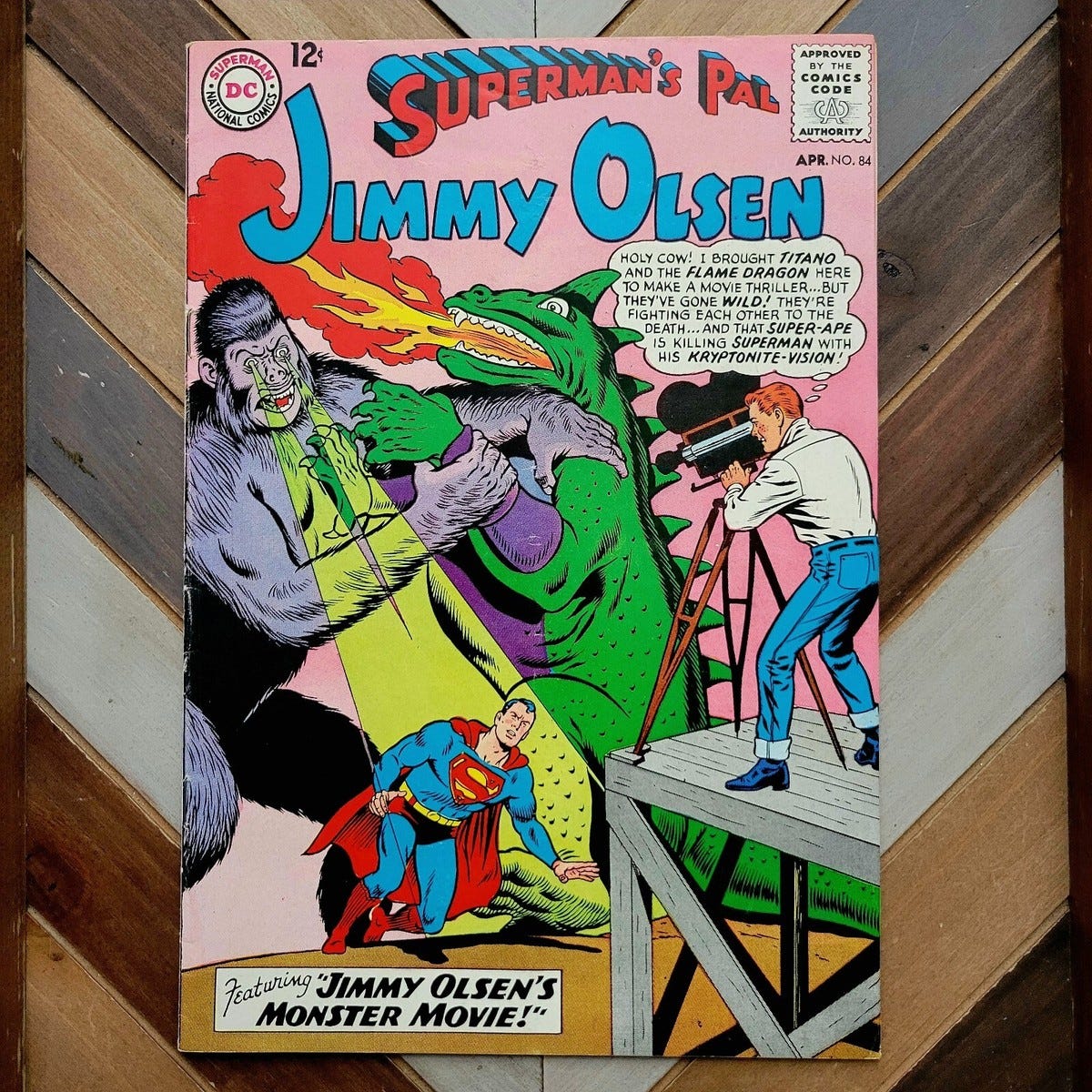 Yet this Flame Dragon returned in “Jimmy Olsen’s Monster Movie” in “Jimmy Olsen” # 84, published in 1965. In that story the Flame Dragon is transported back to the then-present day to combat the gigantic ape Titano, in a clear allusion to King Kong battling Godzilla.