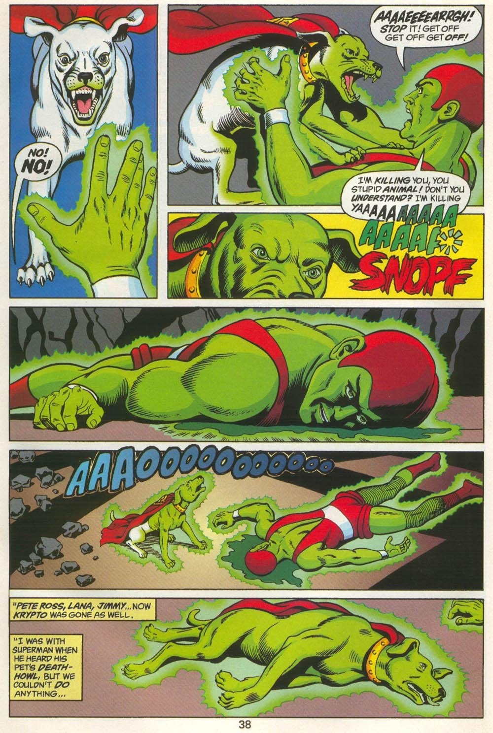 So it was that Moore not only treated Krypto seriously in this saga, but gave him a grandly heroic and event tragic demise, courageously sacrificing his life to save his beloved master from one of his deadliest foes, the Kryptonite Man.