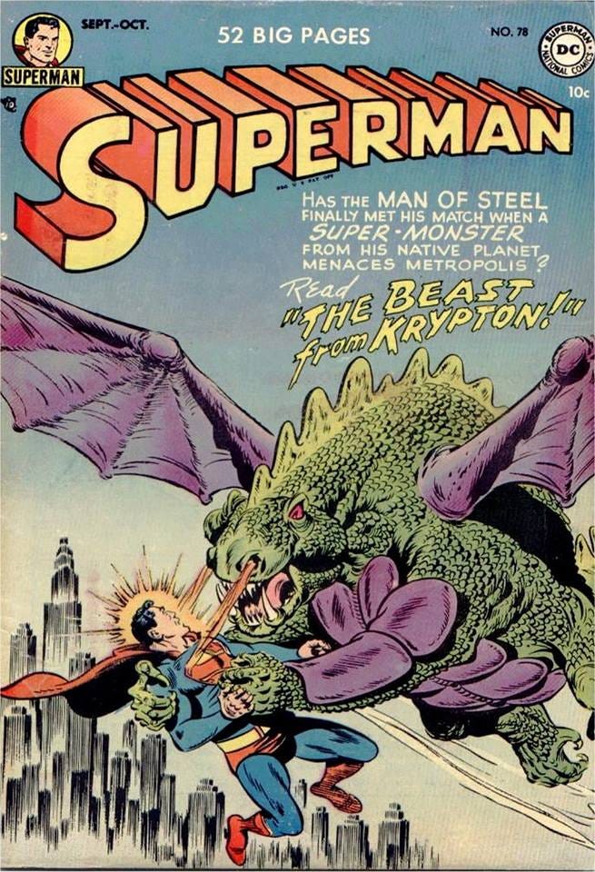 A Kryptonian dragon first appeared to combat Superman in “The Beast from Krypton!” written by Batman co-creator Bill Finger and drawn by Wayne Boring, in “Superman” #78, published in 1952. It flies and breathes fire, and it is a Kryptonian called a “snagriff.”